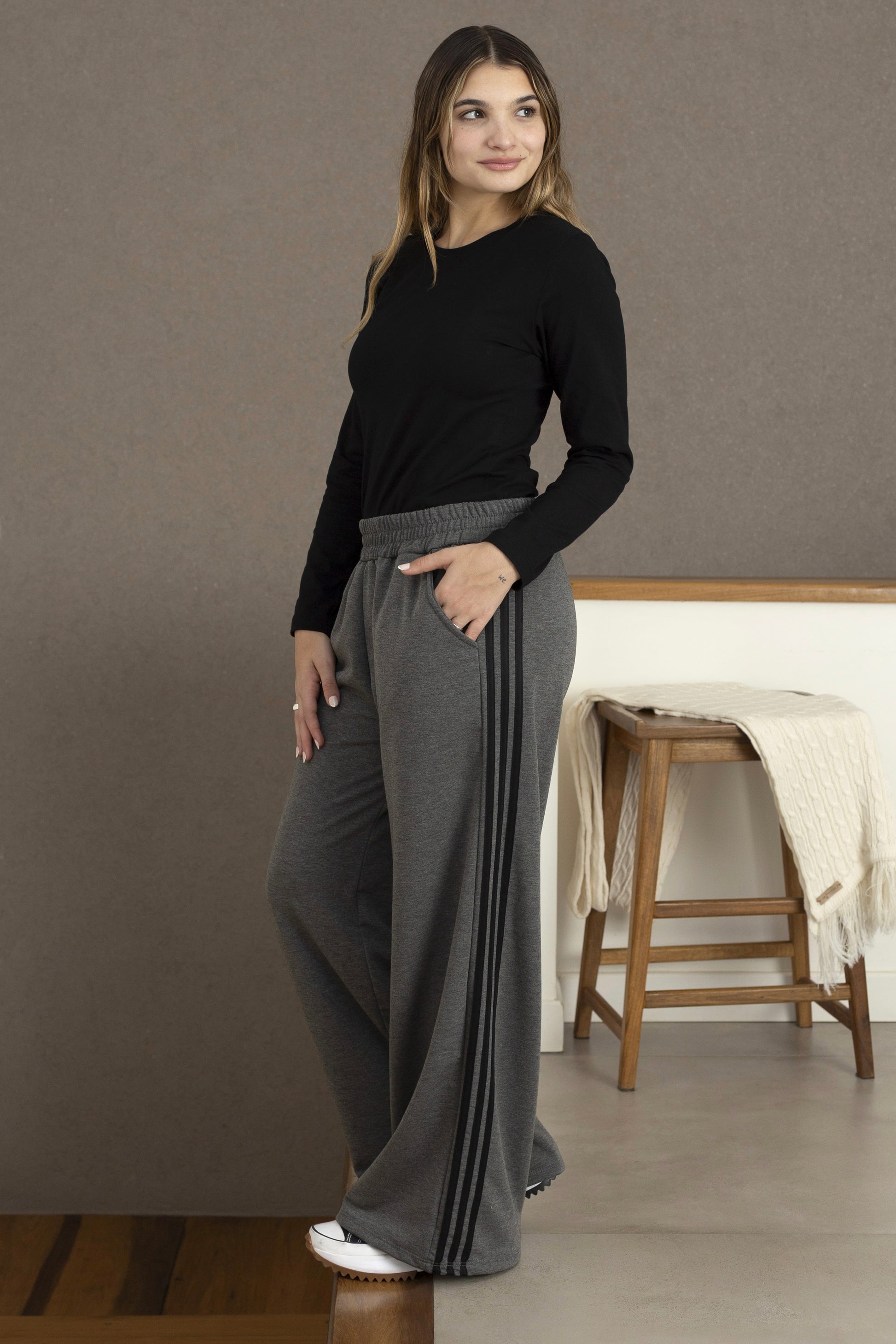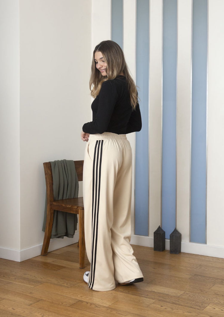 Palazzo de algodón Afranelado, cintura elasticada y bolsillos laterales