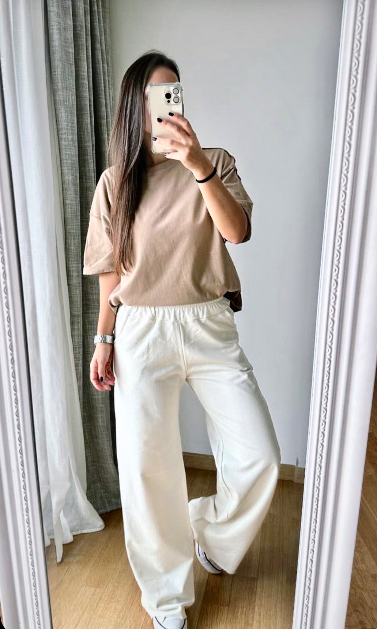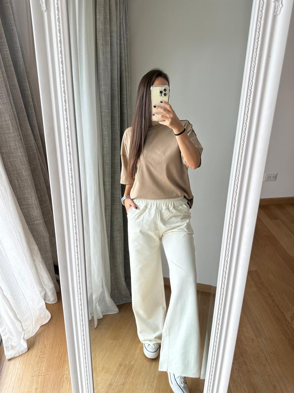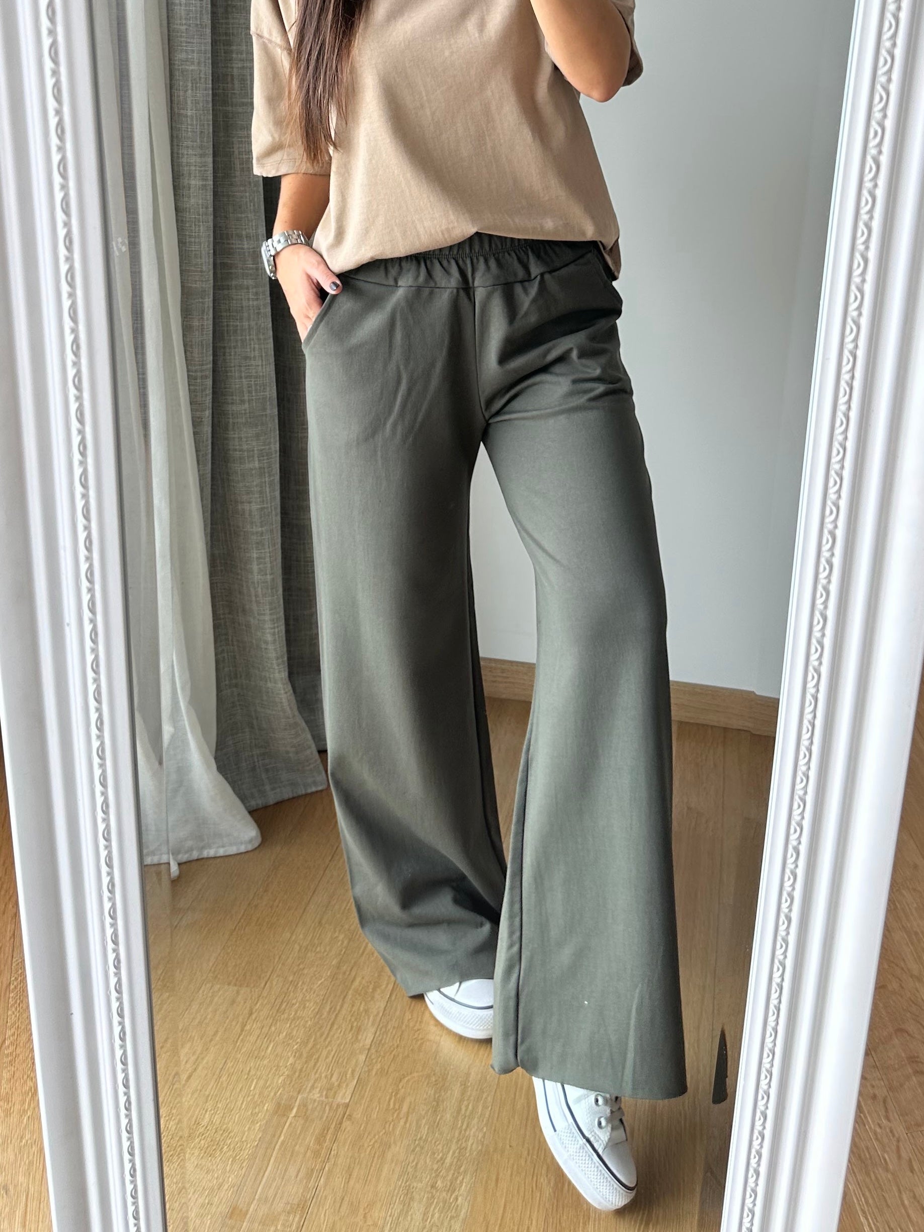 Tela algodón rústico, bolsillos laterales y cintura elasticada