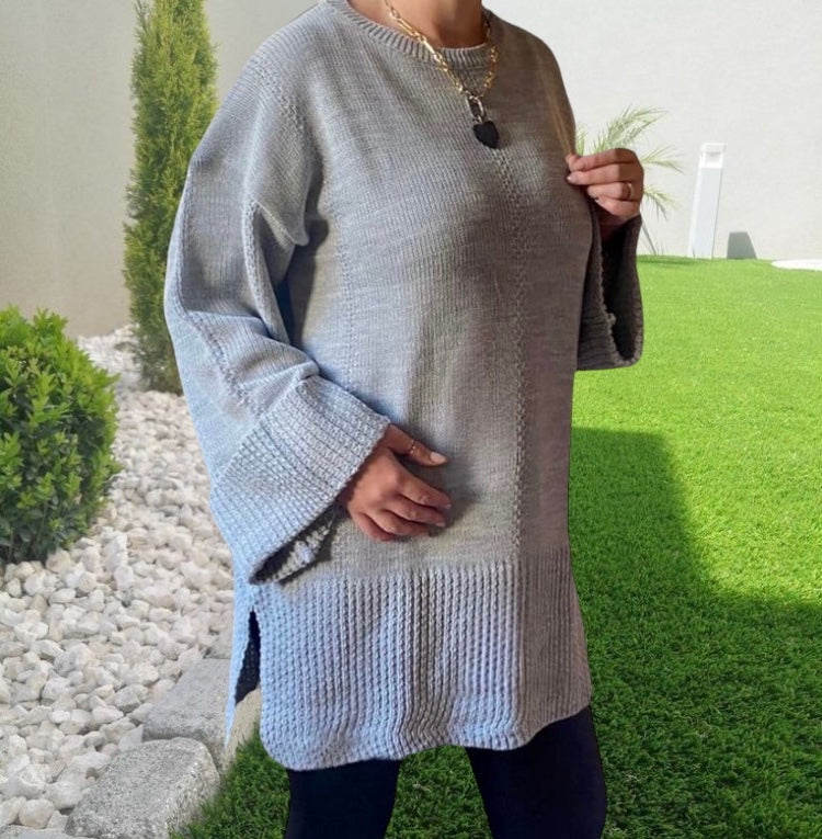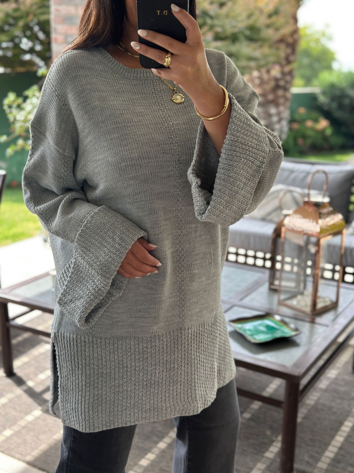 Sweater Acanalado, manga ancha, aberturas a los costados
